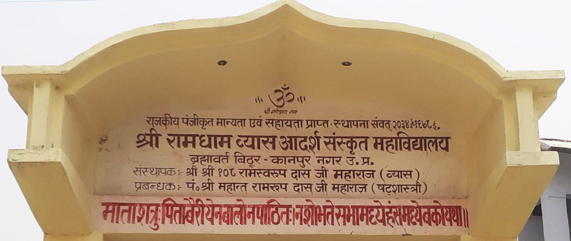 मेरे विद्यालय की स्थापना 1980 में श्री 108 स्वामी रामस्वरूप दास व्यास साकेत वासी के परम शिष्य श्री 108 स्वामी रामदास प्रधानाचार्य ने संस्कृत भाषा के उत्थान एवं प्रचार प्रसार तथा गरीब छात्रों के कल्याण हेतु की थी हमारे विद्यालय से पढ़े हुए छात्र आज कई सरकारी संस्थानों में कार्यरत है तथा संस्कृत के विद्वान् भागवत पुराण के व्यास कर्म काण्ड मर्मज्ञ है विद्यालय का लक्ष्य है निर्धन छात्रों की सेवा शिक्षा देकर समाज एवं राष्ट्र का हित और उत्थान किया है वर्तमान समय में विद्यालय में 118 छात्र पठन पाठन कर रहे है।